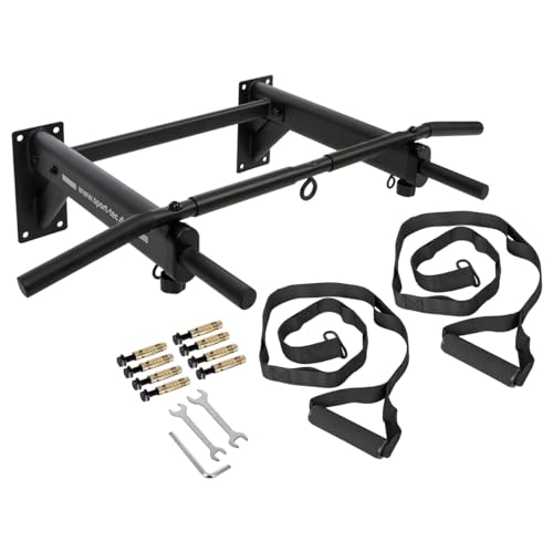 Sport-Tec Klimmzugstange zur WandmontagePull Up Reck, 6 gepolsterte Griffe, Ultra Stabil, Schwarz