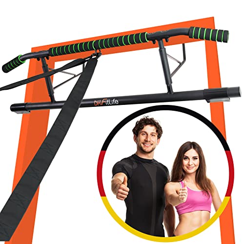 Die DH FitLife Klimmzugstange ist eine robuste und vielseitige Trainingshilfe, die einfach ohne Schrauben im Türrahmen montiert werden kann. Sie ist für Türrahmen von 70 bis 92 cm geeignet und bietet eine stabile Basis für verschiedene Übungen wie Klimmzüge und Core-Training. Die mitgelieferte Sling-Trainer-Befestigung erweitert die Übungsmöglichkeiten. Einige Nutzer haben jedoch Stabilitätsprobleme unter schwerer Belastung festgestellt.