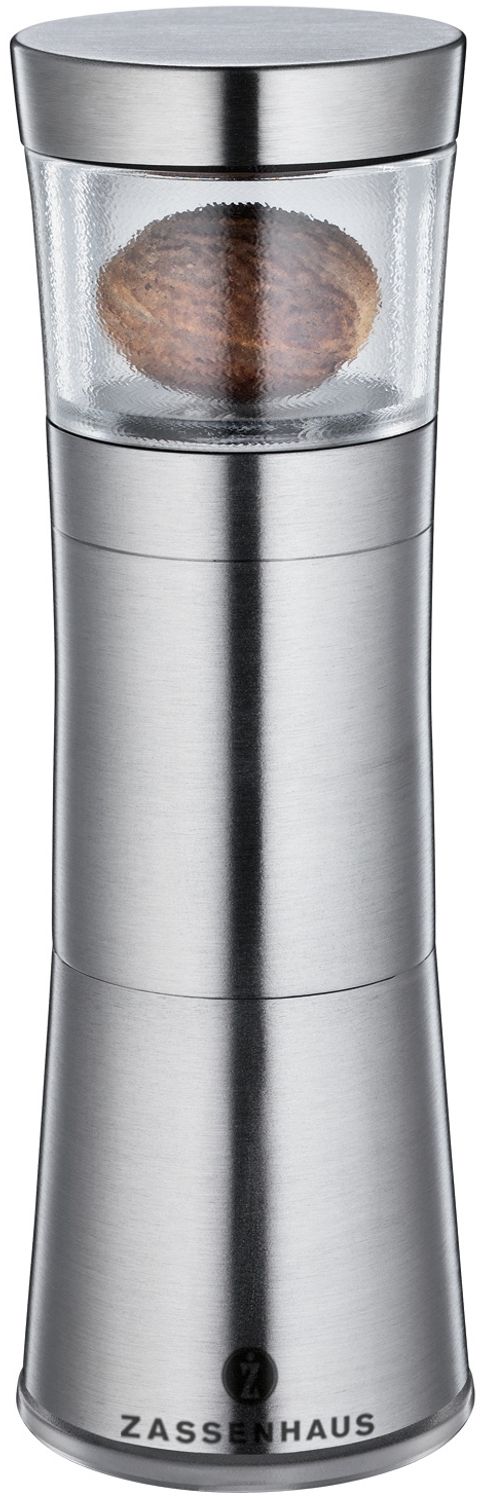 Die Zassenhaus Mephisto Muskatmühle ist die perfekte Wahl für leichtes und sicheres Hobeln und Dosieren von Muskatnüssen. Die scharfen Messer sind strategisch angeordnet und hobeln die Muskatnuss besonders fein, um das volle Aroma freizusetzen. Mit der Verschlusskappe können Sie das Mahlgut einfach dosieren und nach Belieben zu verschiedenen Gerichten hinzufügen. Die Mühle verfügt über ein praktisches Vorratsfach für den Nuss-Nachschub. Das Design aus Acryl und Edelstahl von Kurz Kurz macht die Mühle auch optisch ansprechend. **Highlights** - Ideal zum leichten und sicheren Hobeln und Dosieren von Muskatnüssen - Scharfe Messer hobeln die Muskatnuss besonders fein für volles Aroma - Verschlusskappe für einfaches Dosieren des Mahlguts - Praktisches Vorratsfach für den Nuss-Nachschub - Attraktives Design aus Acryl und Edelstahl von Kurz Kurz **Produkteigenschaften** - Marke: Zassenhaus - Höhe: 13 cm - Durchmesser: 4,4 cm - Gewicht: 0,144 kg - Material: Edelstahl / Acryl - Zum Hobeln und Dosieren von Muskatnüssen - Design von Kurz Kurz