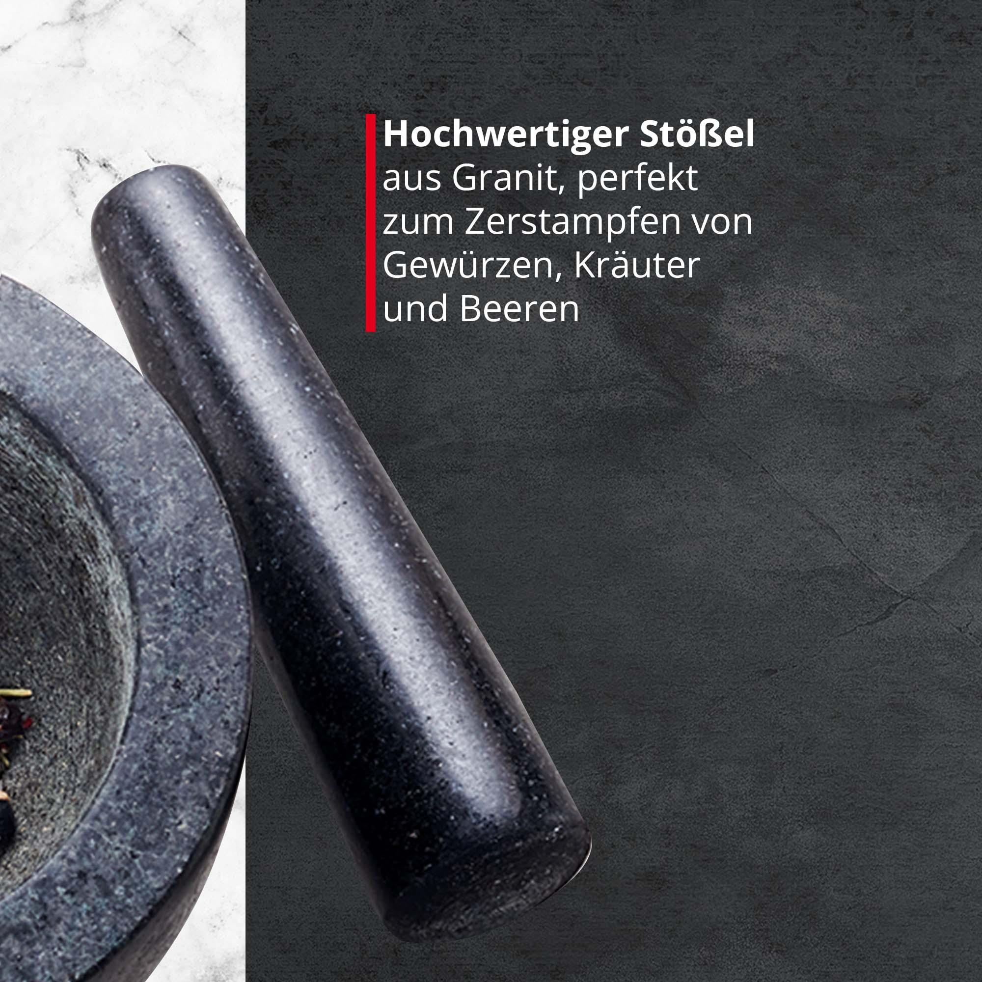| Name | MEISTERKOCH Mörser mit Stößel Granit für Gewürze, Schwarz groß XXL mit 3,5 kg rutschfest, polierter Steinmörser, Innenfläche & Stößelspitze rau, Gewürzmörser massiv mit 15cm Ø & 450ml |