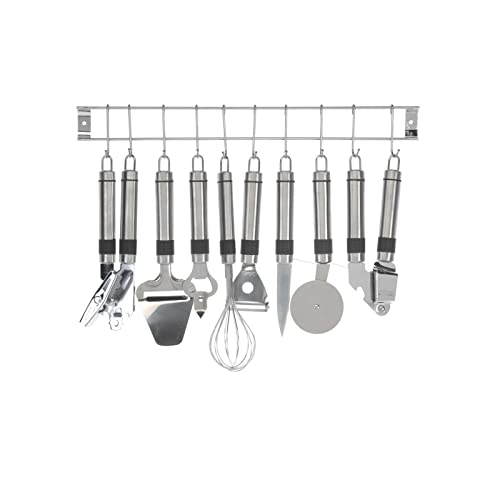 • Das Küchenhelferset 9-teilig von neuetischkultur beinhaltet verschiedene Werkzeuge wie Schneebesen, Pizzaroller, Dosenöffner, Knoblauchpresse, Käsehobel, Küchenmesser, Sparschäler, Flaschenöffner und Hakenleiste