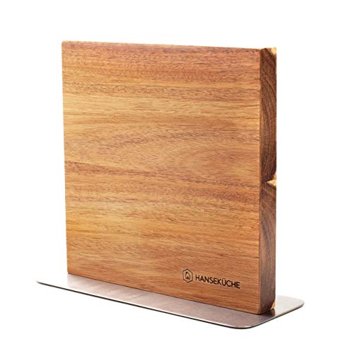 Der magnetische Messerblock aus Akazienholz von Hanseküche bietet die praktische Möglichkeit, Ihre Messersammlung sicher und platzsparend aufzubewahren. Dank der starken magnetischen Wirkung halten die Messer fest an dem Doppelseitigen Messerhalter ohne dass sie herunterfallen. Das edle Aussehen des Holzes verleiht Ihrer Küche zudem eine elegante Note.