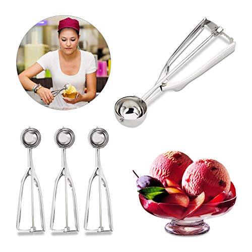 4 x Eisportionierer Edelstahlmit Auslöser, für Eis, Obst, Keksteig, Eiskugel ∅ 39 mm, Profi Ice Cream Scoop, silber