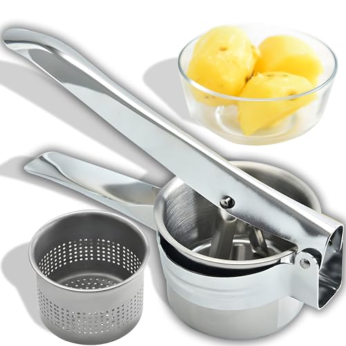 Retoo Kartoffelpresse Edelstahlhochwertige Presse zur Zubereitung von Kartoffelpüree, Multipresse, Einfache Reinigung, Spülmaschinengeeignet, Rostfrei, Obstsäfte, Gemüsebrei, Püree 27 x 9 x 6,5