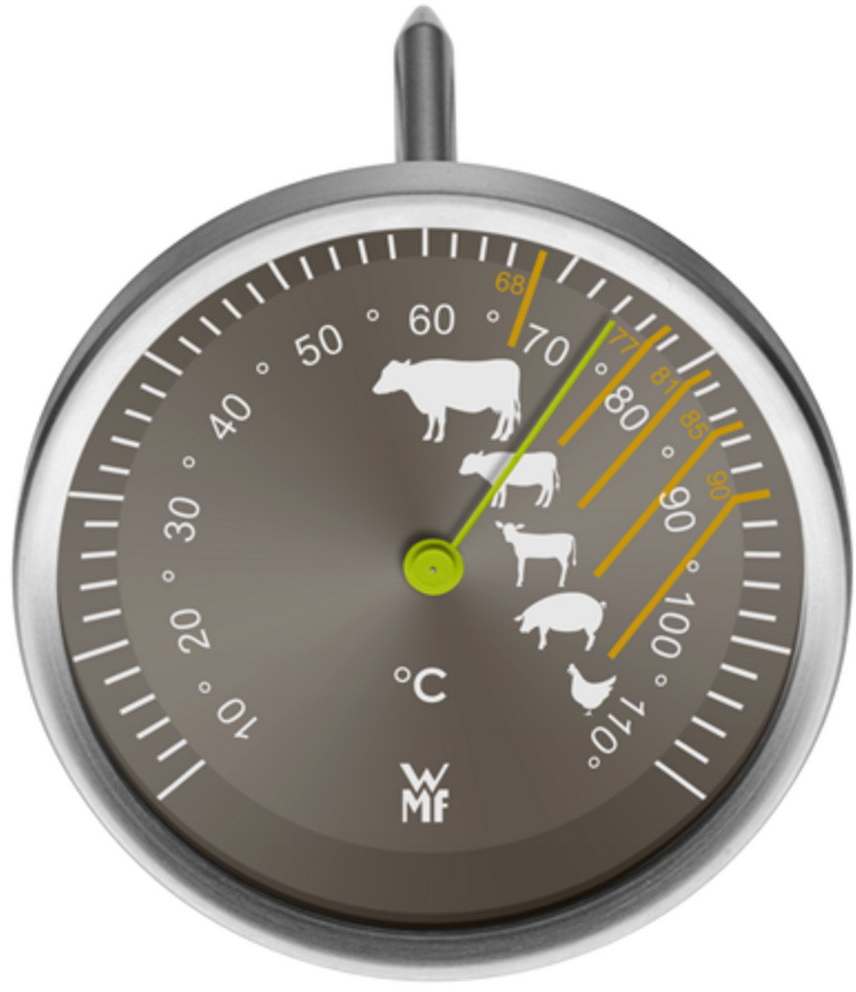 Das Grill-Fleischthermometer von WMF erleichtert das perfekte Garen von Fleisch, indem es präzise Kerntemperaturen misst. Es ist gut verarbeitet, robust und einfach zu handhaben. Die abgerundete Spitze reduziert die Verletzungsgefahr und ermöglicht eine einfache Handreinigung nach Gebrauch.
