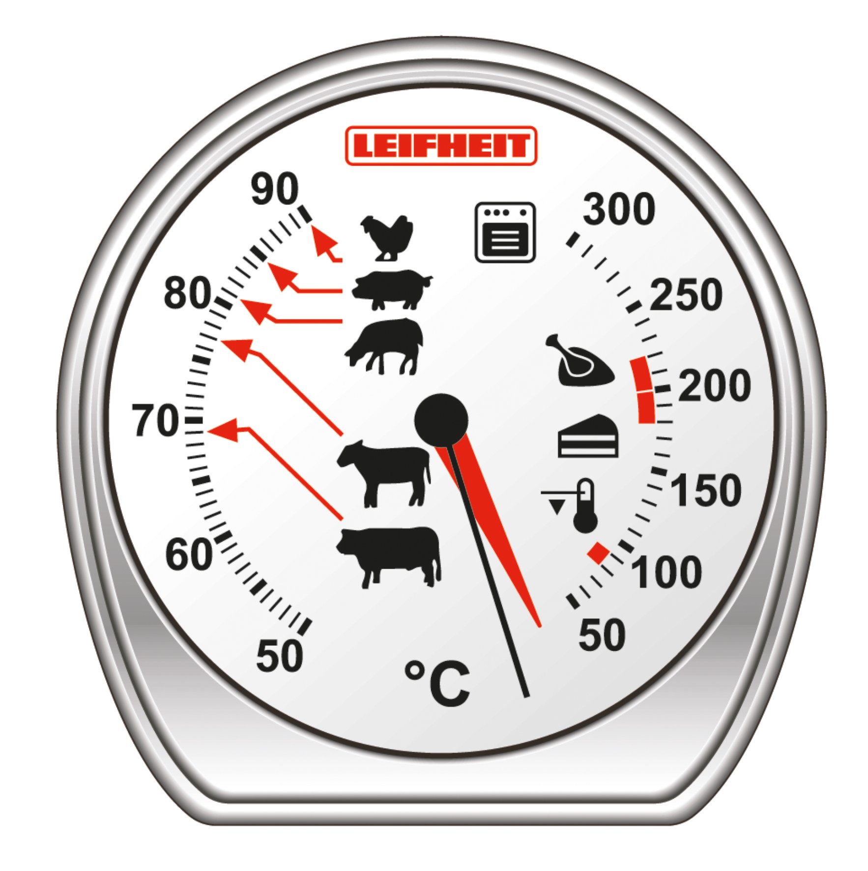 Das Braten- und Ofenthermometer von Leifheit bietet Ihnen die Möglichkeit, während des Kochens oder Backens gleichzeitig die Temperatur Ihres Fleisches und Ihres Ofens im Blick zu behalten. Mit seiner einfachen Handhabung unterstützt es Sie dabei, Ihre Gerichte auf den Punkt genau zuzubereiten. Trotz gemischter Kundenbewertungen zeigt das Thermometer ein solides Preis-Leistungsverhältnis und liefert gute Leistung beim Kochen und Backen.