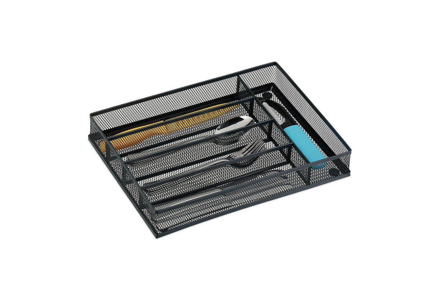 Relaxdays Besteckkasten MetallAnthrazit, 5 Fächer für Messer, Gabeln und Löffel, Rutschhemmende Füße