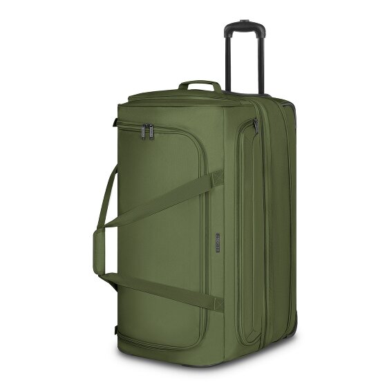 Die Redolz Duffle Essentials 2-Rollen Reisetasche bietet viel Platz und ein praktisches, erweiterbares Bodenfach. Sie ist aus robustem Material gefertigt und ermöglicht sowohl das Tragen als auch das Ziehen. Die Tasche hat Noppen am Boden, die das Aufstellen erleichtern, jedoch kann sie bei voller Beladung kippen.