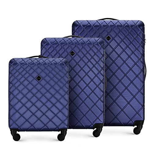 Das WITTCHEN Reisekoffer 3er Koffer-Set Rollkoffer Trolley Handgepäck bietet eine praktische Lösung für alle Ihre Reisebedürfnisse. Hergestellt aus strapazierfähigem ABS in Dunkelblau, verfügt das Set über 4 Spinner Rollen und einen Teleskopgriff für einfaches Manövrieren sowie ein zuverlässiges Zahlenschloss zur Sicherung Ihrer Gegenstände.
