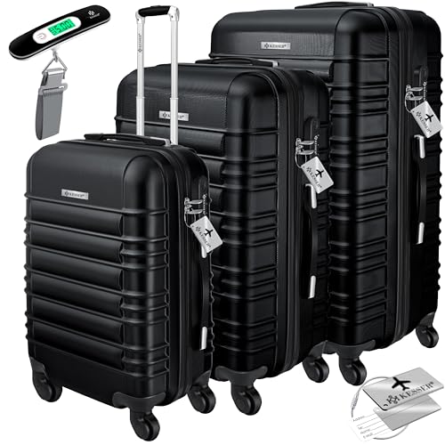 Das KESSER 3tlg. Hartschalenkofferset bietet Reisenden eine zuverlässige und praktische Lösung für ihre Gepäckanforderungen. Hergestellt aus robustem ABS-Material, zeichnet sich das Set durch seine solide Verarbeitung und angemessene Größe der Koffer aus. Die stabilen Rollen sorgen für eine reibungslose Bewegung, während der leicht ausziehbare Teleskopgriff den Transport erleichtert. Das integrierte Schloss bietet zusätzliche Sicherheit, während das ansprechende Design des Sets einen stilvollen Look unterstreicht.