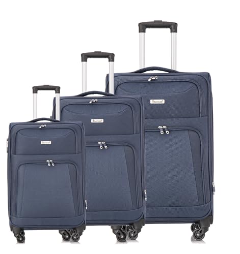 COFI 1453 Hochwertiges 3er Kofferset aus Stoff mit Erweiterbarer Kapazität und 360° Rädern Blau