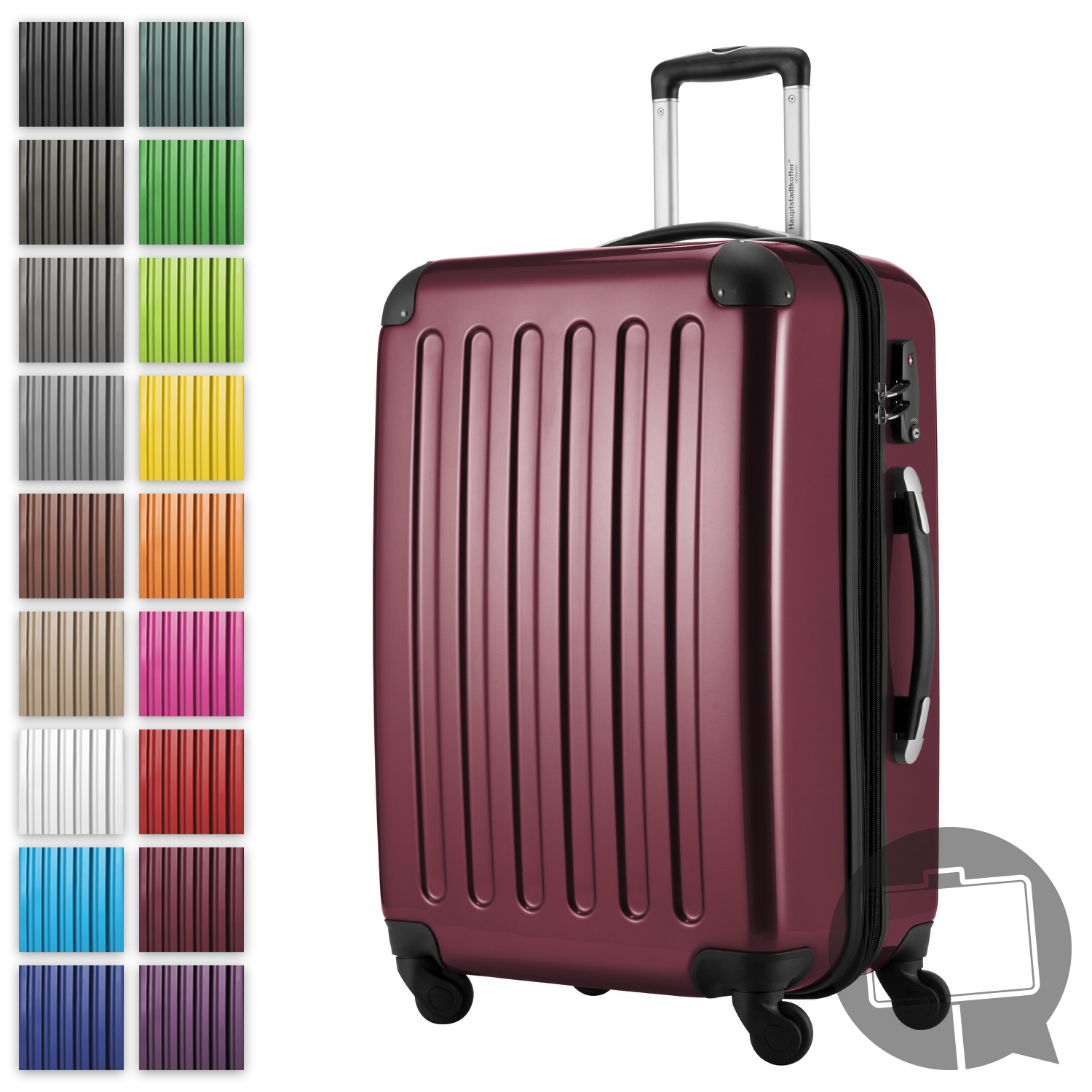 Der Hauptstadtkoffer Alex ist ein geräumiger Hartschalenkoffer mit einem Volumen von 119 Litern, der durch einen Reißverschluss erweiterbar ist. Er bietet ein ansprechendes Design in verschiedenen Farben und ist gut verarbeitet. Die Rollen sind stabil und leise, was das Bewegen des Koffers erleichtert. Der Innenraum ist praktisch unterteilt, um den Inhalt zu organisieren. Trotz seiner positiven Eigenschaften gibt es einige Schwächen, wie die Stabilität des Griffs und die Festigkeit der Innenschnallen, die bei schwerem Gepäck problematisch sein können.