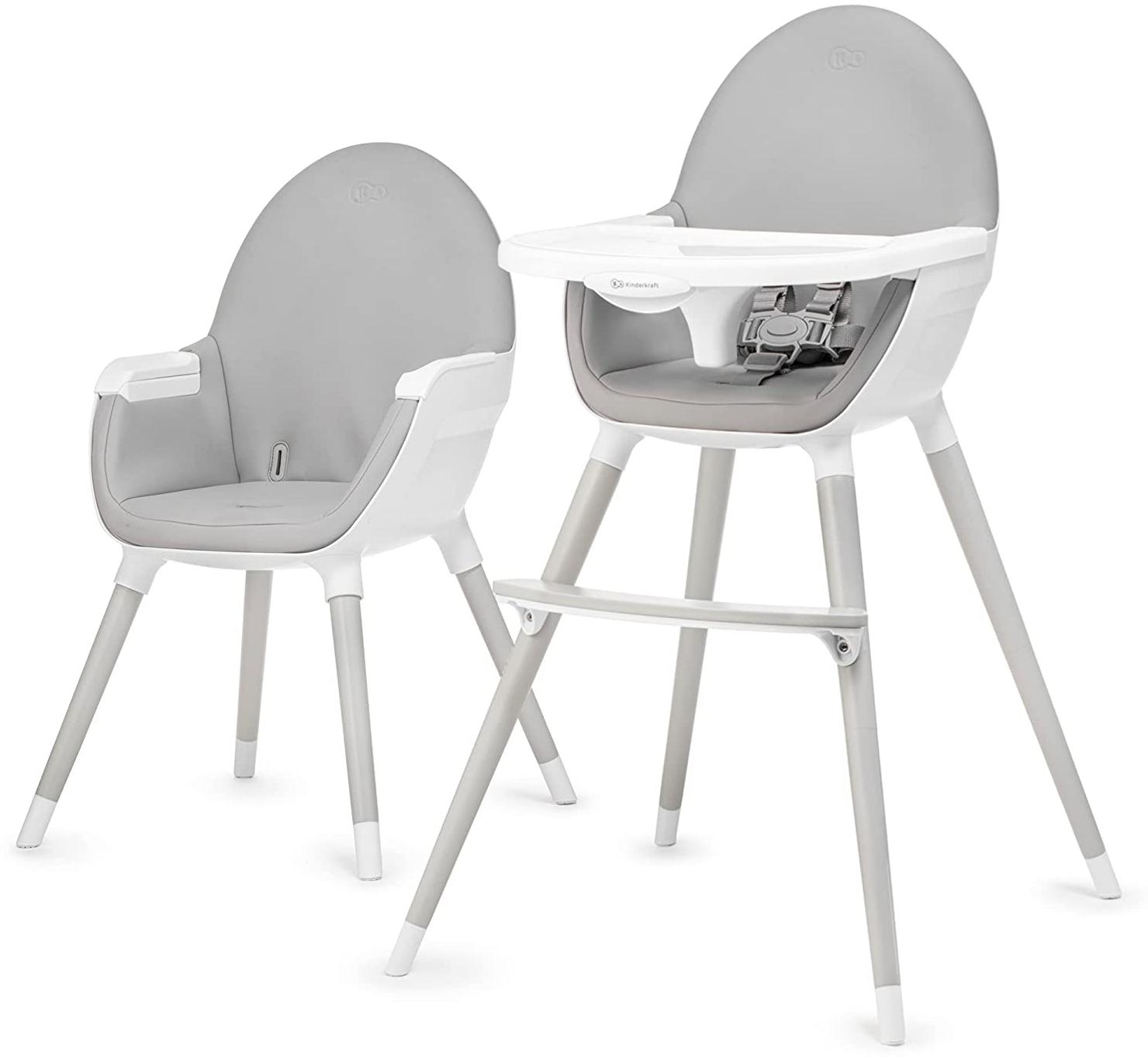 | Name | Kinderkraft Hochstuhl FINI 2 in 1, Kinderhochstuhl, Babystuhl, Kombihochstuhl, Beine aus Holz, Sicherheitsgurte, Fußstütze, Doppeltablett, ab 6 Monate bis 5 Jahre, 5 Punkt Gurte, Grau |