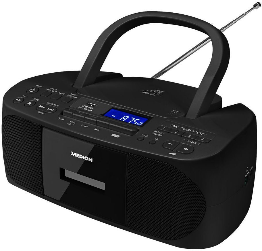 Die MEDION LIFE E64070 Stereo Sound System Boombox ist ein vielseitiges und tragbares Gerät, das CD, Kassette, Radio, Bluetooth und USB unterstützt. Der Klang ist für den Preis gut, besonders für Kinder, und die Bedienung ist einfach. Es gibt jedoch einige kleinere Mängel wie eine lange Einlesezeit für CDs und ein möglicherweise störendes Geräusch beim CD-Betrieb.