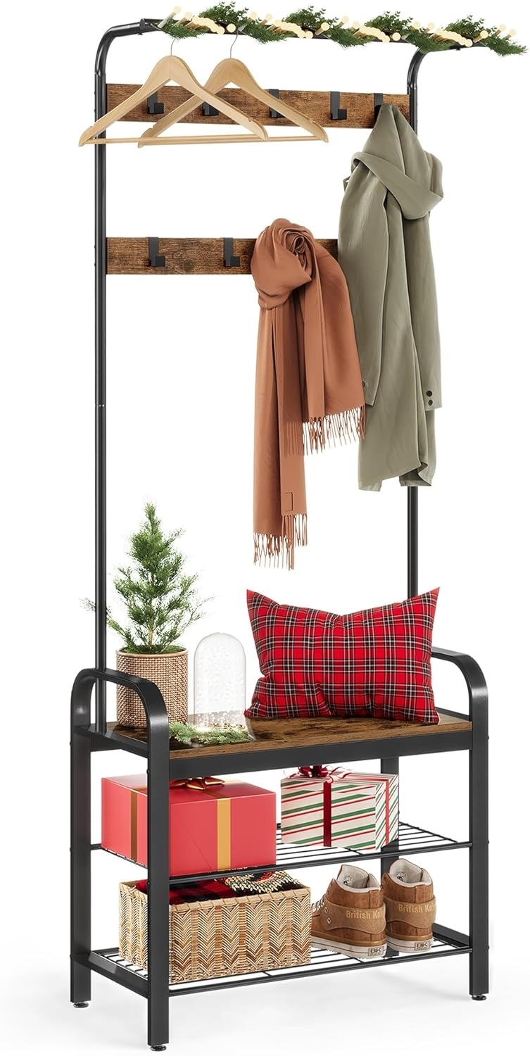 | Name | Vasagle Kleiderständer Garderobenständer rustikal mit 9 Abnehmbaren Haken Schuhregal mit Sitzfläche 3 Ablagen Holz Metall 72 x 183 x 33.7 cm Vintage von Songmics HSR40B |