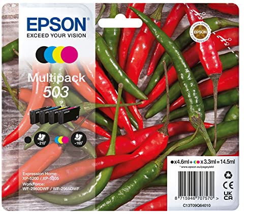 • Das Epson Original 503 Tinte Chili Multipack 4-farbig Standard ist kompatibel mit den Druckern XP-5200, XP-5205, WF-2960DWF und WF-2965DWF