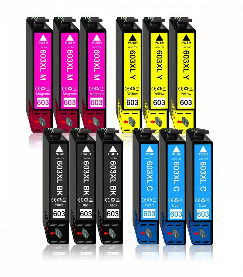 Druckerparadies 12er Pack Druckerpatronen 603 603XL kompatibel mit Epson WF-2850 Tintenpatrone (12-tlg) - XL Füllmenge, brillante Farben, hohe Seitenreichweite