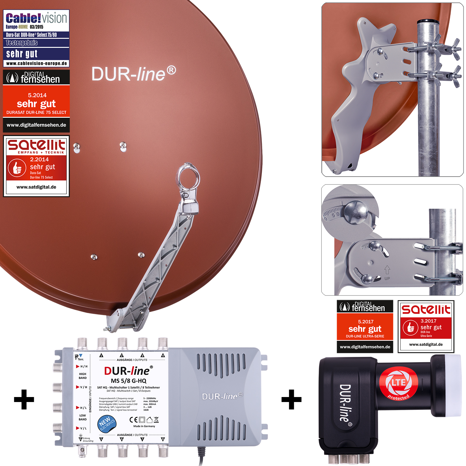 Das DUR-line 8 Teilnehmer Set ist eine hochwertige Satelliten-Komplettanlage, die für bis zu acht Receiver oder Fernseher geeignet ist. Mit einer einfachen und schnellen Installation bietet das System eine sehr gute Bildqualität sowie stabile Ausführung in bester Qualität. Der Multischalter des Sets ermöglicht sogar den Anschluss von bis zu zwölf Teilnehmern.