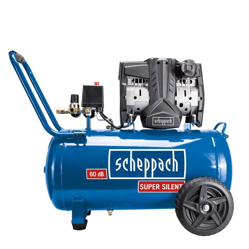 Der Scheppach HC51Si Super Silent Doppelzylinder Kompressor bietet eine leise Betriebslautstärke von nur 60 dB(A) und ist somit ideal für den Einsatz in geräuschempfindlichen Umgebungen geeignet. Mit einer Ansaugleistung von 300 l/min und einem 50L Kessel mit 8bar Druck hält dieser ölfreie und wartungsarme Kompressor gut den Druck, um verschiedene Aufgaben zu erledigen.