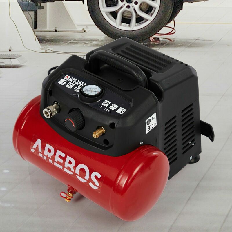 Druckluft Luftkompressor 6L 1200W 13tlg. Druckluft-Set + Spiralschlauch - Rot-Schwarz - Arebos