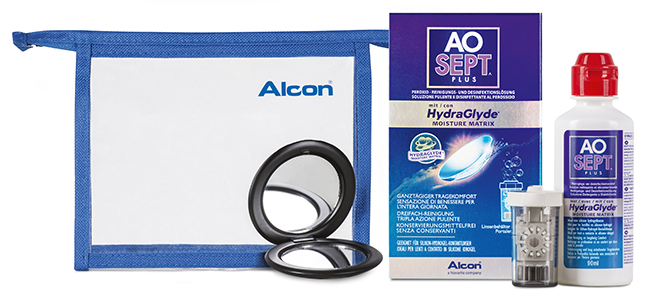Reiseset mit effektiver Reinigung und Feuchtigkeit für weiche Kontaktlinsen, ideal für unterwegs.