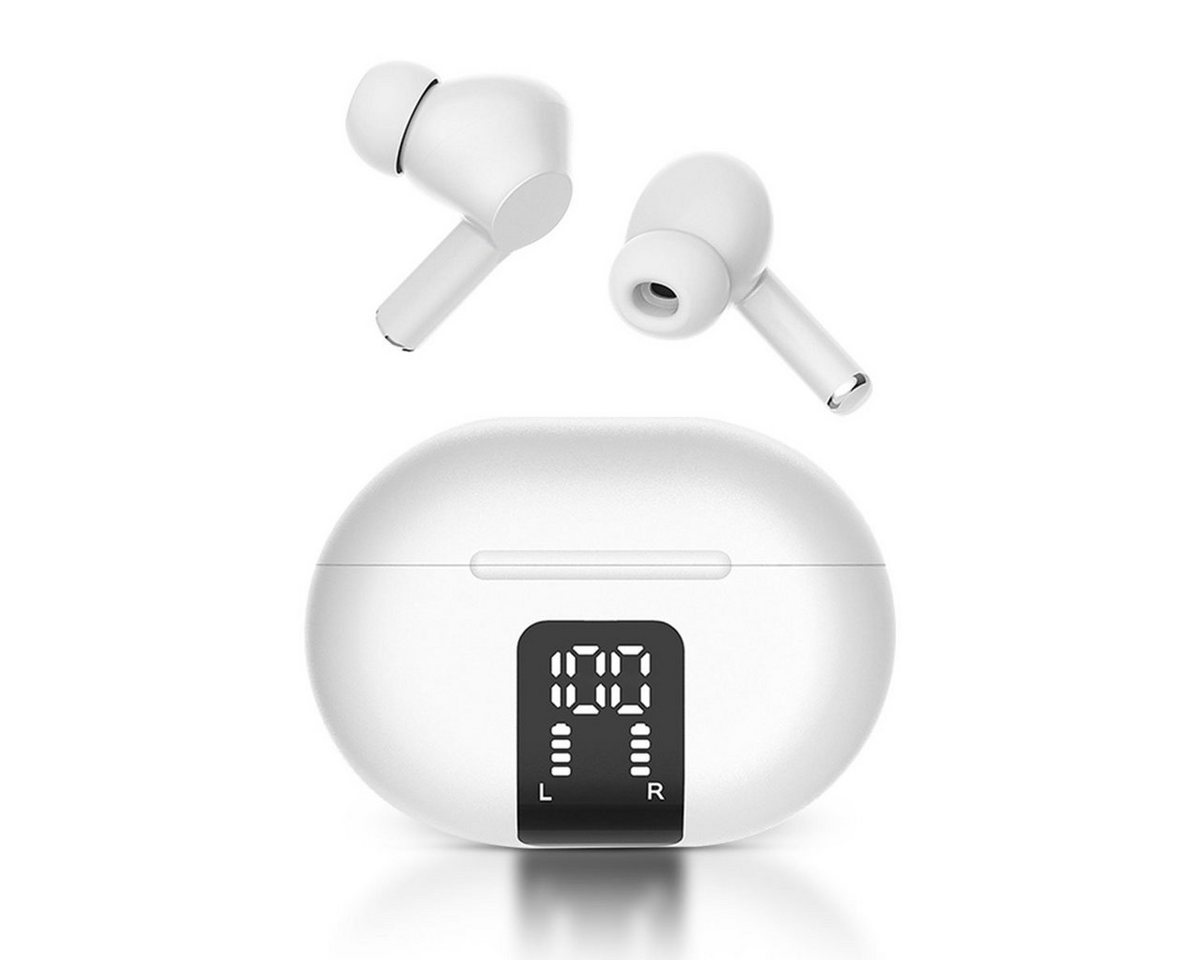 LED-Indikator, 2 integrierte Ultra HD-Mikrofone, 3 unterschiedlich große Ohrstöpsel (S, M, L)