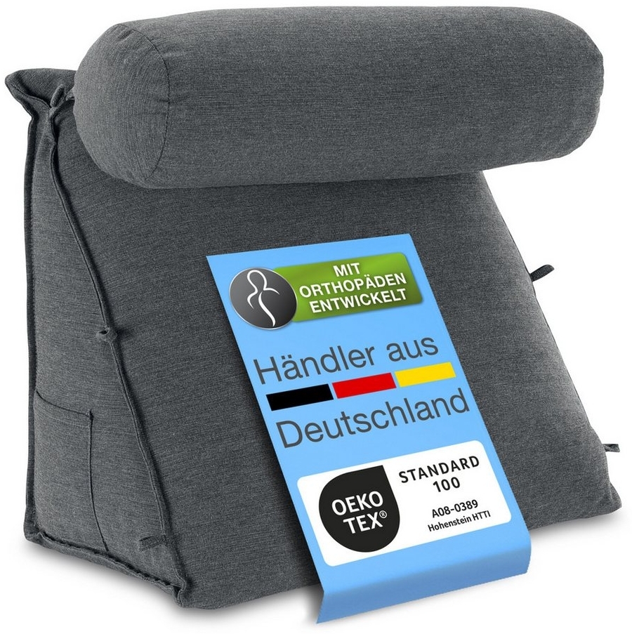 | Name | aktivshop Rückenkissen mit Nackenrolle für Bett & Sofa, 55x50x30cm, waschbarer Bezug |