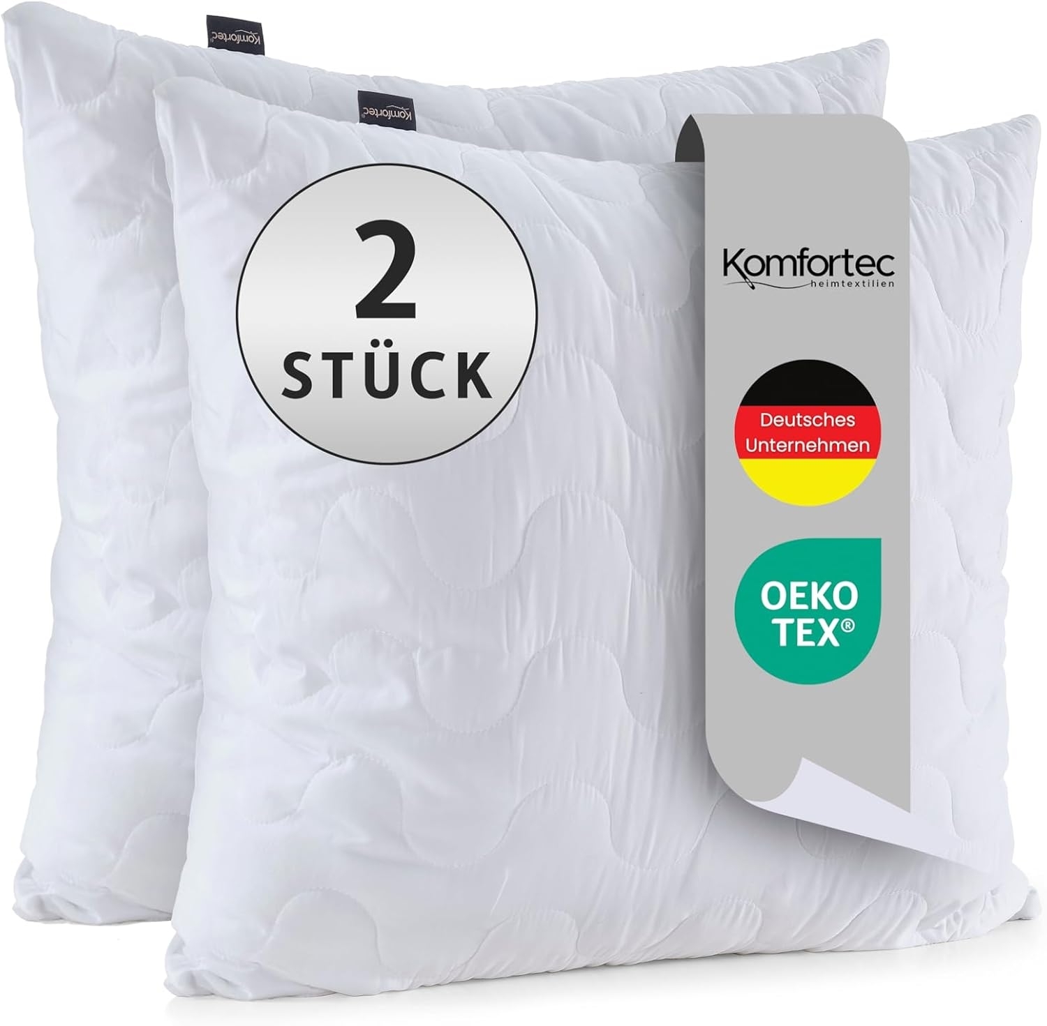 Name Komfortec Kopfkissen 40x40 cm 2 er Set, Höhenverstellbar Gesteppt Kissen, Deko Kissen, Oeko-TEX Zertifiziert, Allergiker geeignet
