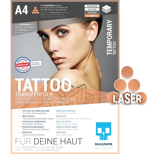 SKULLPAPER® temporäre Tattoo-Transferfolie FÜR DIE HAUT - SEHR GUT getestet - für Laserdrucker (A4-4 Blatt)