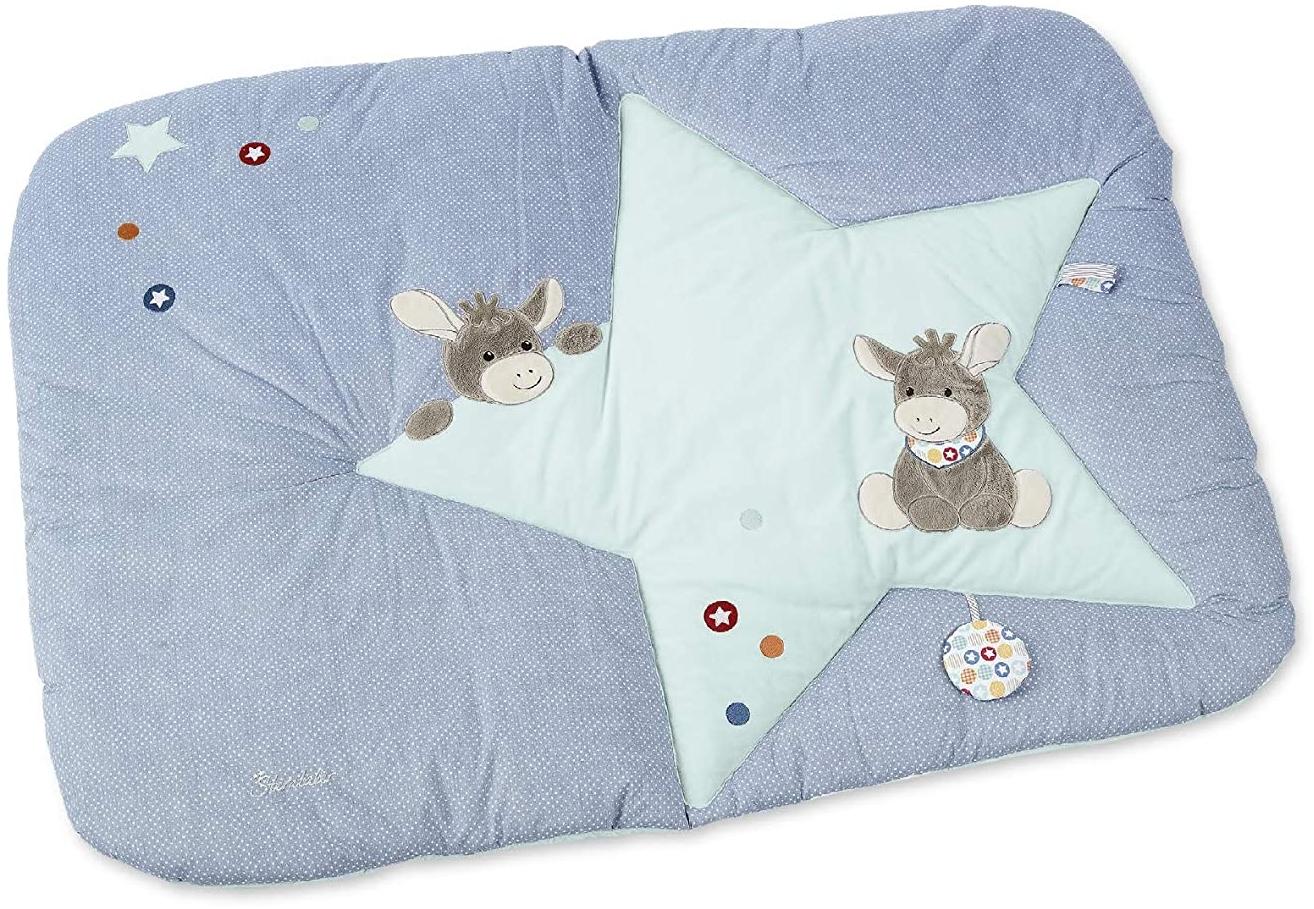 Sterntaler Krabbeldecke 'Emmi Donkey' **Maße**: 90x130 cm Babys erster Spielplatz! Die weiche Krabbeldecke aus Polycotton, Softvelour und Flausch mit Motiv Esel Emmi. Durch die Quietsche und das Knisterpapier werden die Sinne Ihres kleinen Schatzes angeregt.