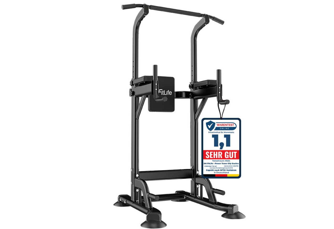 DH FitLife Power Tower Dip StationKraftstation mit Klimmzugstange, max. 150 KG Belastung, höhenverstellbar, rutschfeste Füße, leistungsstarker Rückentrainer und Dip Barren