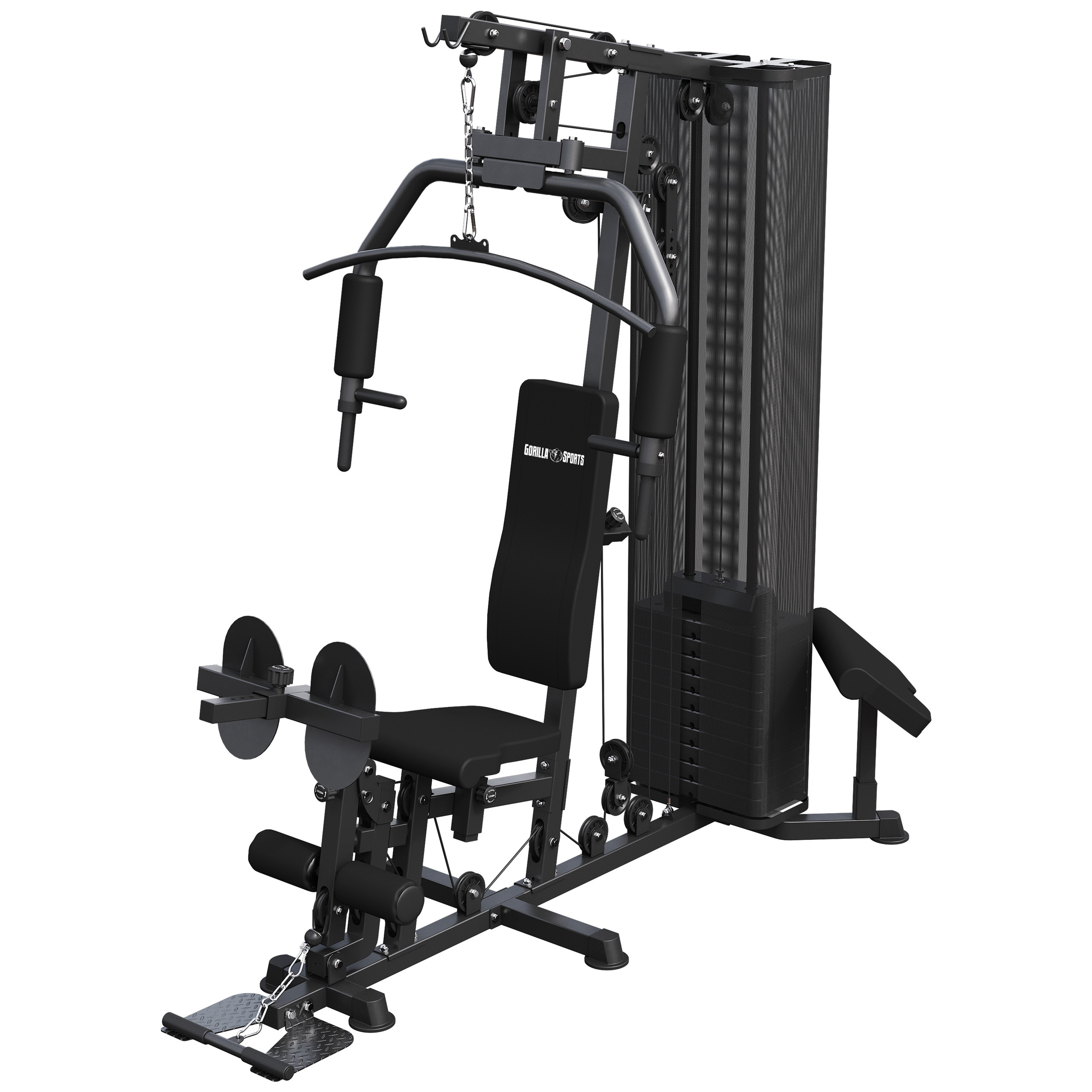 Gorilla Sports Kraftstation - Verstellbarmit Latzug, Butterfly, Beincurler, bis 150 kg - Schwarz/Grau