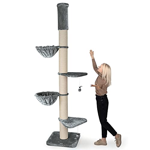 Dieser XXL Deckenhoch-Kratzbaum eignet sich ideal für Besitzer von großen oder schweren Katzen, die ihren Tieren viel Platz zum Spielen, Toben und Ausruhen bieten möchten. Die verschiedenen Ebenen und Mulden laden zum Erkunden ein und ermöglichen es den Vierbeinern, ihre natürlichen Bedürfnisse auszuleben. Der Kratzbaum spricht somit vor allem Tierliebhaber an, die auf der Suche nach einer stabilen und attraktiven Spielumgebung sind.