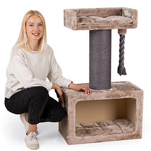 Dieses Produkt bietet eine stabile und robuste Lösung für das Kratzen und Entspannen von Katzen, insbesondere für große und schwere Rassen. Die hohe Materialqualität sorgt dafür, dass der Kratzbaum langlebig ist und den Anforderungen aktiver Katzen gerecht wird. Darüber hinaus fördert er durch die Verwendung von Sisalstämmen das natürliche Kratzverhalten der Tiere, was zur Pflege ihrer Krallen beiträgt.