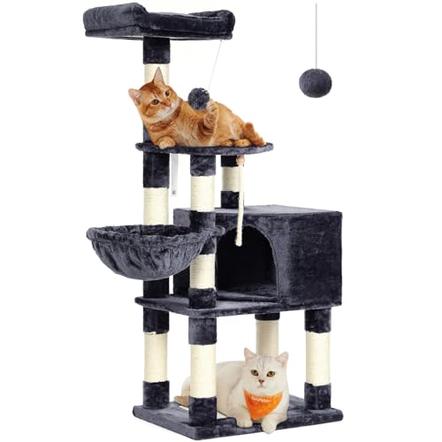Vielseitiger Kratzbaum mit mehreren gemütlichen Plätzen und Spielmöglichkeiten, ideal für mehrere Katzen.