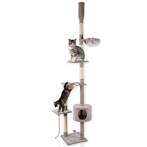 Der Katzenbaum bietet eine attraktive Möglichkeit, das Spiel- und Kletterverhalten von Katzen zu fördern. Durch die verschiedenen Ebenen haben Tiere genügend Raum zum Entspannen und Spielen, was ihren natürlichen Instinkten entgegenkommt. Die ansprechende Optik fügt sich gut in verschiedene Wohnumgebungen ein und sorgt dafür, dass der Baum nicht nur funktional ist, sondern auch als dekoratives Element dient.