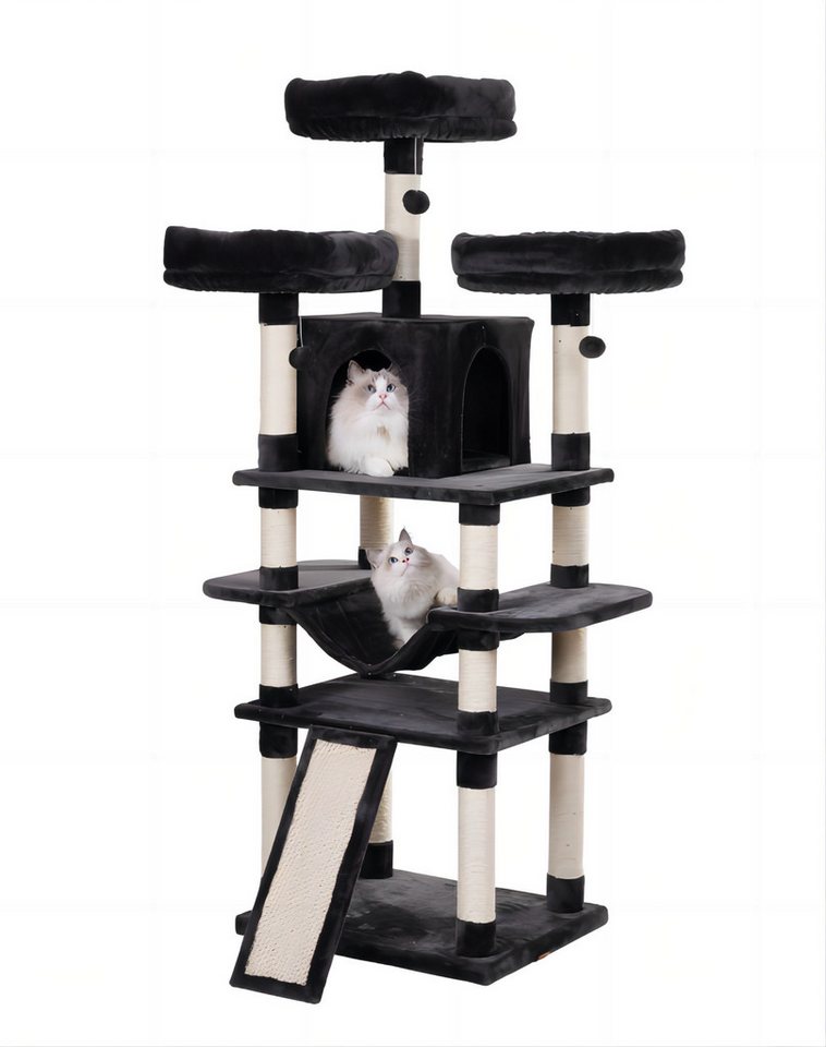 • Der Kratzbaum verfügt über verdickten Plüsch und hochwertige Spanplatten, um Formaldehydgefahren zu vermeiden.
