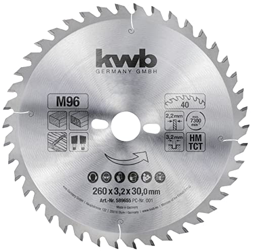kwb Kreissägeblatt 260 x 30 mmschneller Schnitt, mittlere Güte, Sägeblatt geeignet für Weich- und Hartholz, Tischlerplatten und Spanplatten