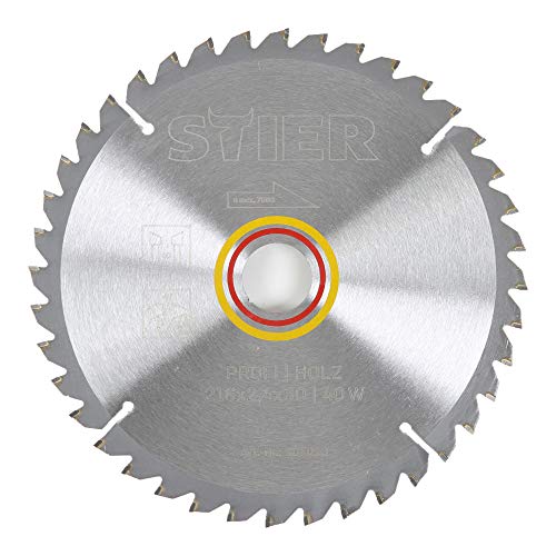 STIER Kreissägeblatt Profi Holz216 x 2,4 x 30mm, -5° neg. Spanwinkel, 40 gehärtete Zähne, Wechselzahn