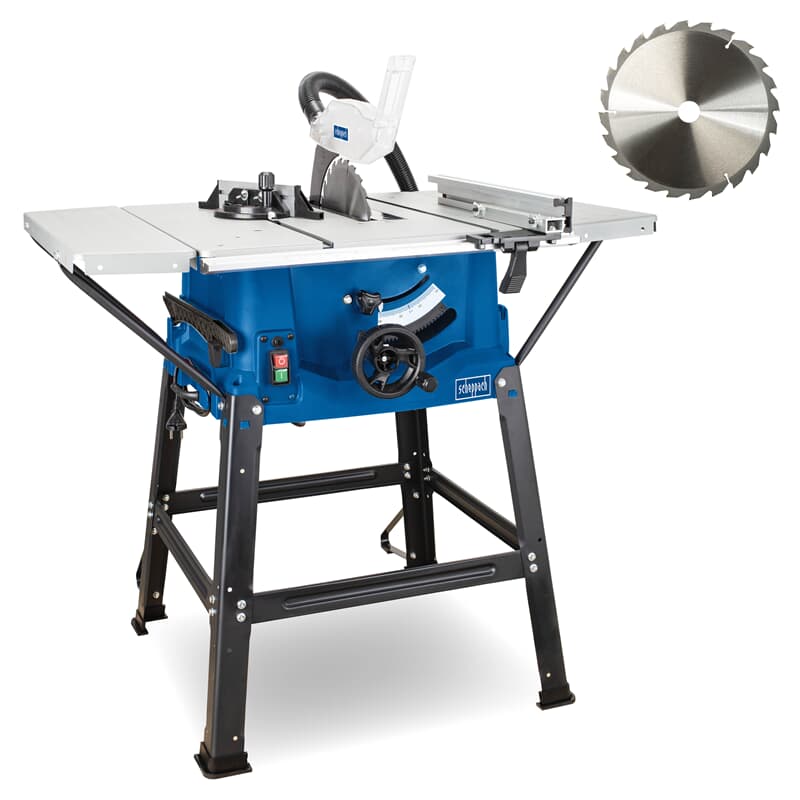 | Lieferumfang | 1x HS100S Tischkreissäge mit Untergestell und Tischverbreiterungen, Sägeblattschutz, Querschneidlehre, Längsanschlag, 1x Sägeblatt Ø 250 x 30 mm, 24 Zähne (vormontiert), 1x Sägeblatt Ø 250 x 30 mm, 48 Zähne (extra) |
