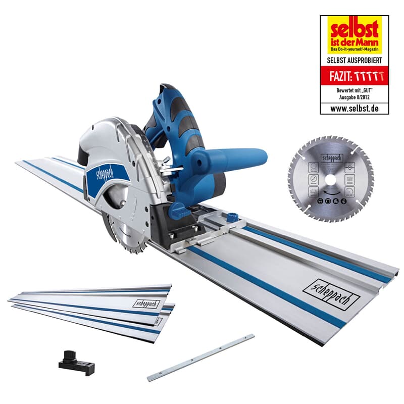 "Das Highlight des Sets aus der Scheppach PL55 und der 2x700mm Führungsschiene ist ganz klar die Tauchsäge PL55. Die Schiene erfüllt ihren Zweck, es bedarf aber einiger Aufmerksamkeit, damit sie nicht auf dem Werkstück verrutscht und damit die Säge sauber über die Verbindung der Schienenstücke gleitet. ..."