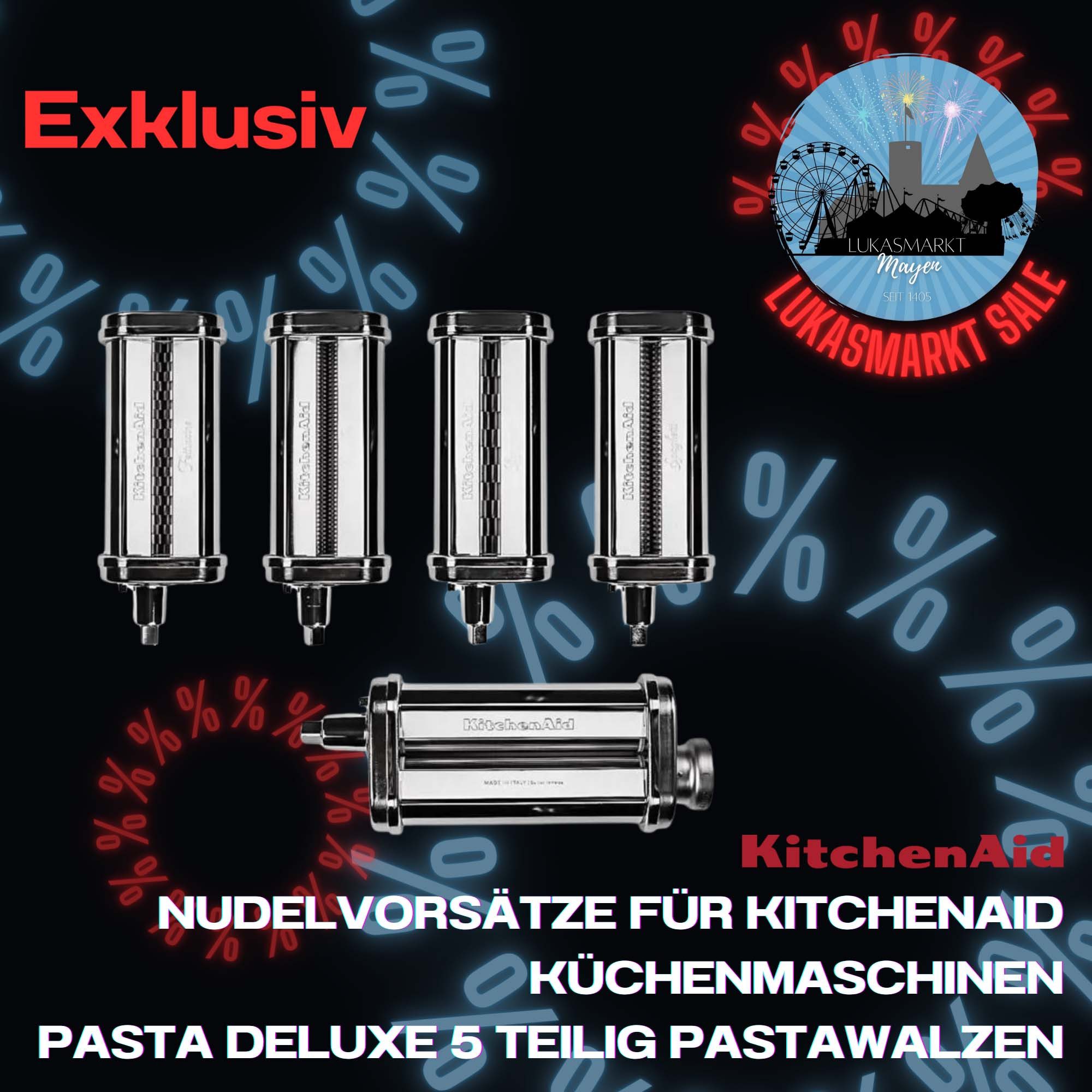 • Entdecken Sie mit dem 5-teiligen KitchenAid Nudelwalzenvorsatz Pasta Deluxe Set 5KSMPDX eine Vielzahl an Möglichkeiten, italienische Pasta zu kreieren