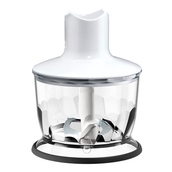 Der Braun Zerkleinerer 500 ml Aufsatz MQ 30 ist ein praktisches Zubehör für den Braun MultiQuick Stabmixer mit EasyClick System. Der Zerkleinereraufsatz erleichtert die Arbeit in der Küche im Vergleich zur Verwendung einer großen Küchenmaschine und ermöglicht das schnelle Hacken von Kräutern, Gemüse oder Nüssen. Er bietet eine solide Verarbeitungsqualität und liefert gute Mixergebnisse. Dank des Gummiringes am Boden steht der Behälter während des Betriebs stabil, was zusätzliche Sicherheit bietet.