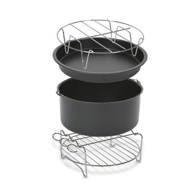 Dieses vielseitige Zubehörset eignet sich besonders gut für kleine Haushalte, die Wert auf eine einfache Zubereitung von Mahlzeiten legen. Es ist leicht zu reinigen und überzeugt durch seine gute Verarbeitung. Die Zielgruppe umfasst somit Menschen, die gerne mit ihrer Heißluftfritteuse experimentieren möchten.