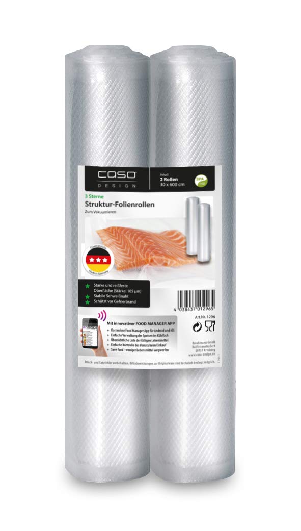 CASO Strukturrollen sind eine praktische Lösung für alle, die Lebensmittel länger frisch halten möchten. Die Rollen bieten einen zuverlässigen Schutz vor Luft und Feuchtigkeit und verhindern so das Wachstum von Bakterien oder Schimmel. Dadurch bleiben Ihre Lebensmittel länger haltbar und Sie können Geld sparen, indem Sie keine unnötigen Lebensmittel wegwerfen müssen.