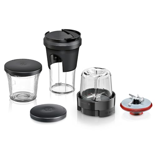 Bosch Zubehör Küchenmaschine MUZS68TMMulti-Zerkleinerer-Set, Kräuter-/Gewürzmühle, Universalzerkleinerer, Mixer, Aufbewahrungslösung, ToGo-Deckel, für Küchenmaschine Serie 6, Serie 8, schwarz