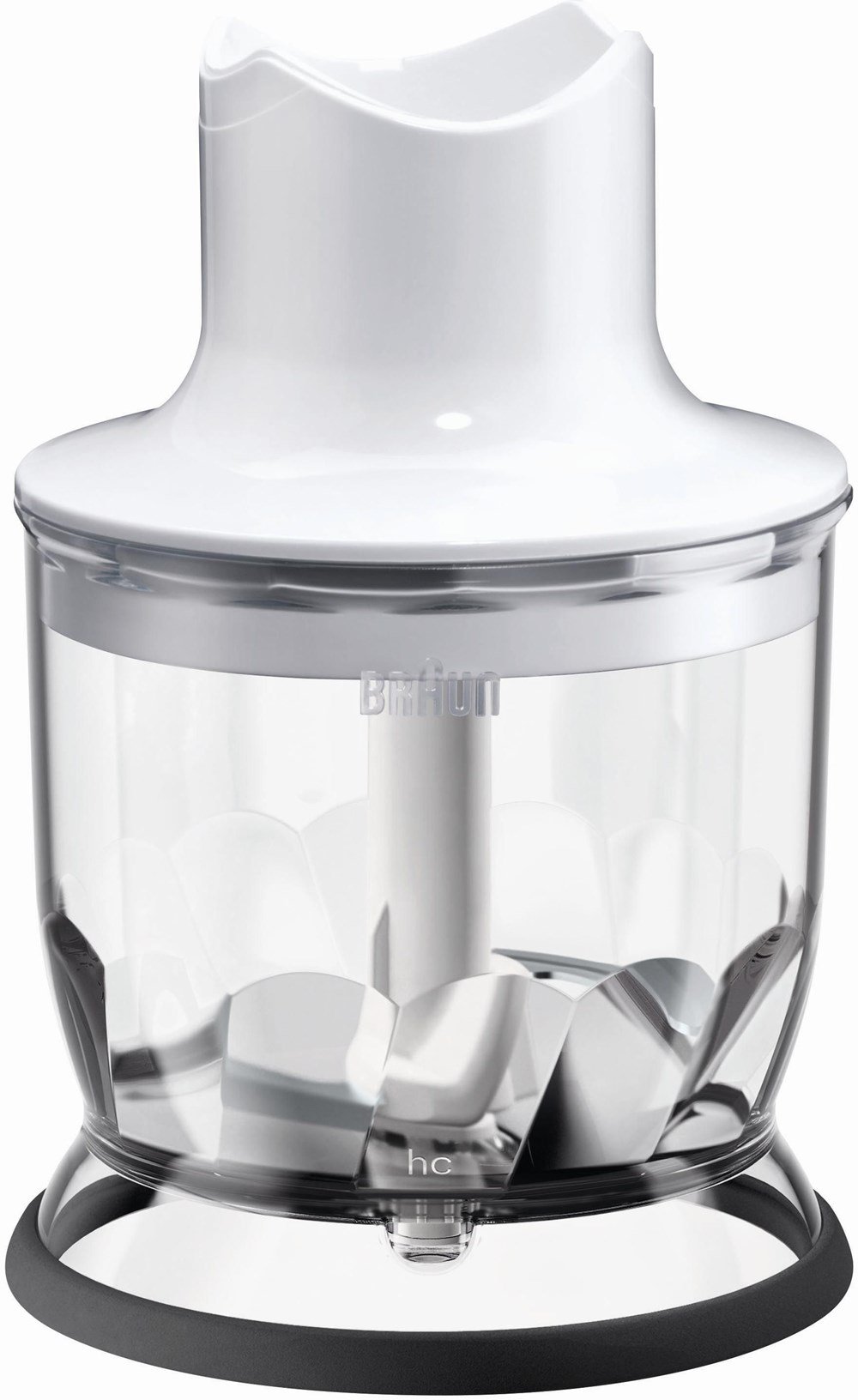 Der Braun Zerkleinerer 350 ml Aufsatz MQ 20 ist ein praktisches Zubehör für den Braun MultiQuick Stabmixer. Der Behälter und das Schneidemesser sind langlebig und der Zerkleinerer lässt sich einfach handhaben. Mit ihm können Lebensmittel schnell zerkleinert werden, was Zeit spart und die Arbeit in der Küche erleichtert.