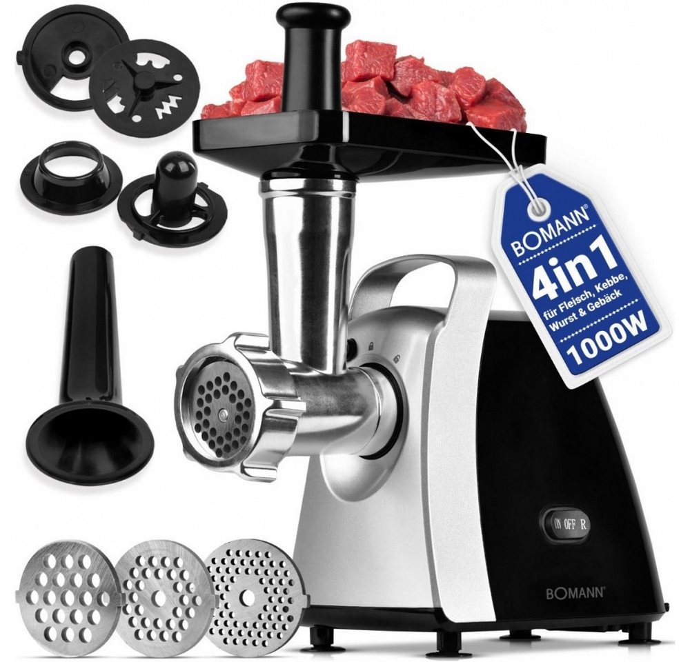 BOMANN Fleischwolfaufsatz Bomann FW 6067 CB Fleischwolf edelstahl/schwarz - Küchenmaschine mit 1000W Leistung und Zubehör für Kebbeaufsatz