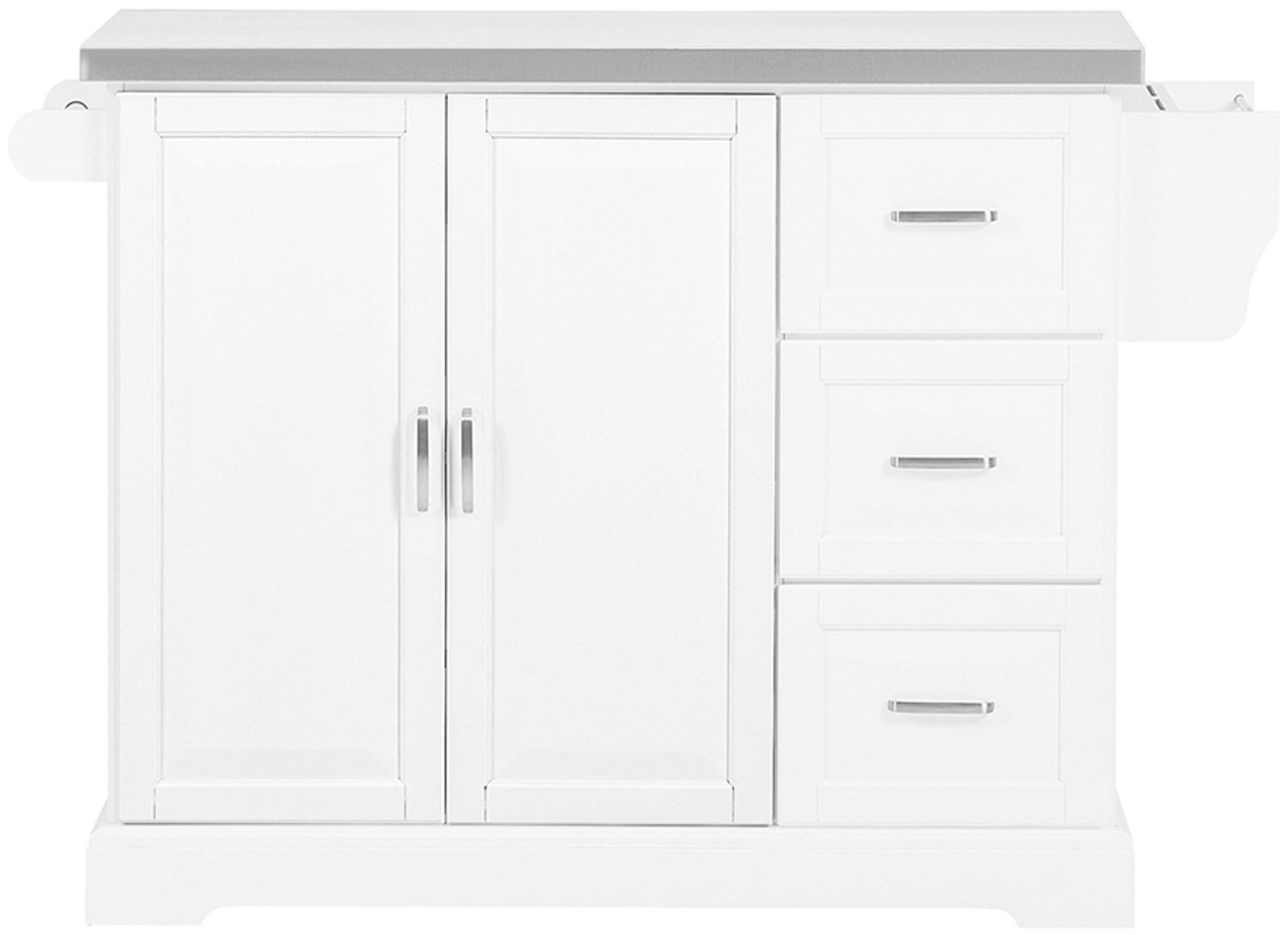 Küchenwagen mit Edelstahlplatte und 4 Rollen in Weiß, Modell FKW41-ST, bietet eine erweiterbare Arbeitsfläche und ist ideal für die Organisation Ihrer Küche. Mit einem stabilen Gestell aus MDF und Bambus sowie einer hochwertigen Edelstahlplatte ist dieser Küchenwagen sowohl funktional als auch stilvoll. Die Belastbarkeit von bis zu 90 kg und die kompakten Maße machen ihn zur perfekten Lösung für jede Küche. **Highlights** - Erweiterbare Arbeitsfläche: Bietet zusätzlichen Platz zum Vorbereiten von Speisen. - 4 Rollen nicht sichtbar: Ermöglicht eine flexible Nutzung und einfaches Bewegen des Küchenwagens. - Schlichtes Design in Weiß: Passt in jede Küche, Ess- oder Wohnzimmer. - Hochwertige Materialien: Tischplatte aus Edelstahl, Gestell aus MDF und Bambus. - Belastbarkeit bis 90 kg: Robust und stabil für den täglichen Gebrauch. **Produkteigenschaften** - Material: Tischplatte aus Edelstahl, Gestell aus MDF und Bambus - Gewicht: ca. 52,6 kg - Produktmaße: B106 (130 cm mit Griff) x T46 x H91 cm - Paketmaße: Paket A: 96 x 47 x 22 cm; Paket B: 118 x 55 x 23,5 cm **Lieferumfang** - 1 x Küchenwagen - 1 x Anleitung - 1 x Zubehörbeutel