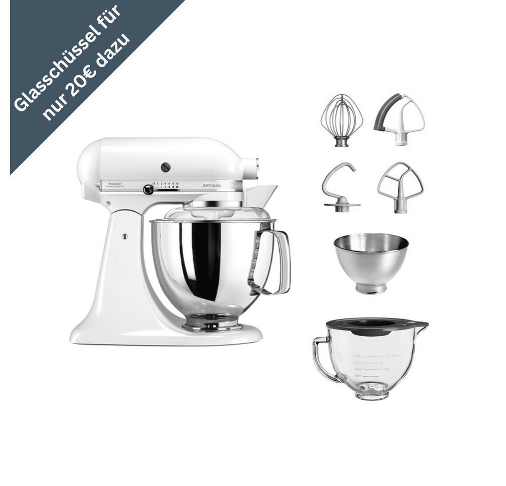 KitchenAid Artisan Küchenmaschine 5KSM175inkl. Glasschüssel (5KSM5GB) - Rührmaschine in klassischem Design, 300 W Motor, 3- und 4,8-L-Schüsseln, robuste Konstruktion